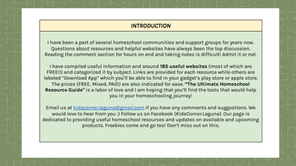 18 pages worth of valuable resources | Guide on understanding homeschooling style and websites for requirements | About 185 curated list of resources